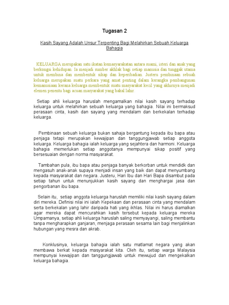 Sumber dipetik daripada Modul. 10 markah Setiap pasangan suami isteri haruslah mengamalkan nilai kasih sayang terhadap keluarga. Pendidikan Moral Tingkatan 5 SPM.